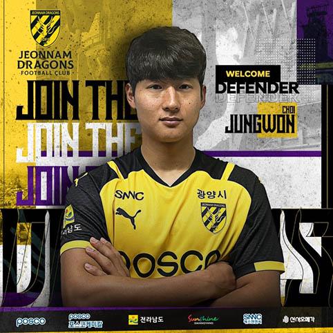 팀에 합류한 최정원은 “전남에 오게 되어 영광이고 감사하다. 제가 가진 장점들을 활용해서 팀에 많은 도움이 되고 싶고, 팀의 목표인 K리그1 승격을 위해 최선을 다하겠다”며 입단 소감을 남겼다.