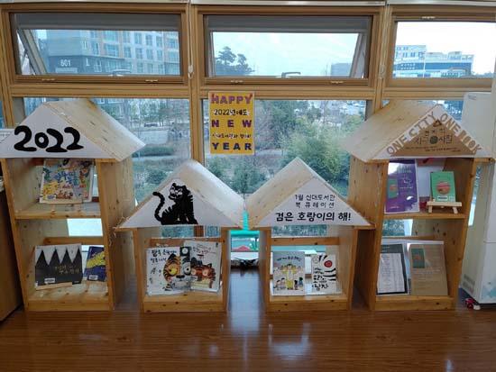 이번 1월은 2022년 순천시 One City One Book 선정도서와 함께 새해를 주제로 관련 도서를 전시 중이다. 일기 쓰기, 호랑이 관련 도서, 새해에 알면 좋은 환경 소식 등 특색 있는 북큐레이션이 이용자의 눈길을 끌고 있다.