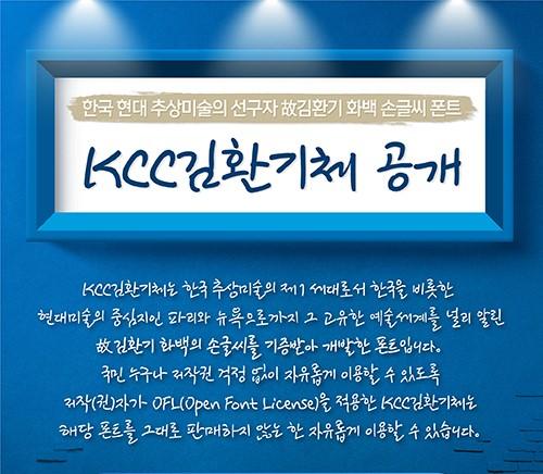 ‘KCC김환기체’는 김훈체, 박경리체, 안중근체, 임권택체에 이어 시각예술분야에서는 첫 번째 사례로 선보인다. 문화체육관광부, 한국저작권위원회와의 협력으로 제작됐다.