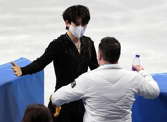 차준환은 첫 과제인 쿼드러플 살코를 깔끔하게 소화하며 기분좋게 출발했다. 차준환을 지켜보던 브라이언 오서 코치는 차준환이 실수없이 점프를 성공하자 제자리에서 펄쩍펄쩍 뛰며 기쁨을 표했다.