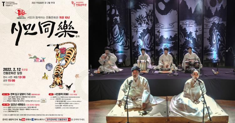 ‘시민과 함께하는 전통문화관 10년 시민 동락(同樂)’을 주제로 열리는 이번 무대는 개관 10년을 되돌아보는 ‘시민 사진 전시’, 임인년 나쁜 기운을 밀어내고 무사안녕을 기원하는 ‘세화시연·나눔’ ‘축하공연’ 등이 선보인다.