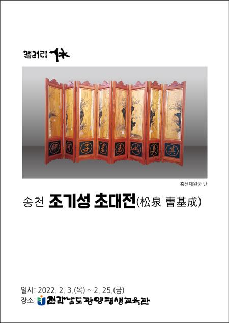 한국예술문화 명인, 대한민국전통명장, 대한민국아카데미미술협회 전남지회장으로 활동하면서 지역에서 꾸준히 작품활동과 전시를 이어오고 있는 조기성 작가의 이번 전시에서 ‘나무에 氣를 넣어 魂 으로 새기다’라는 주제로 나무에 한땀 한땀 혼을 담은 <반야심경>, <호랑이> 등 작품 24점이 지역주민과 만나게 되며, 작품마다 글과 그림이 나뭇결 위에 한데 어우러져 조화를 이루고 양각과 음각 등 다양한 기법에 현대적인 디자인이 더해져 각양각색의 매력을 뽐내고 있다.