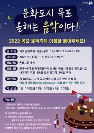 ‘문화도시’ 전남 목포시가 오는 9월 열리는 목포음악축제(가칭) 명칭을 오는 25일까지 공모한다.