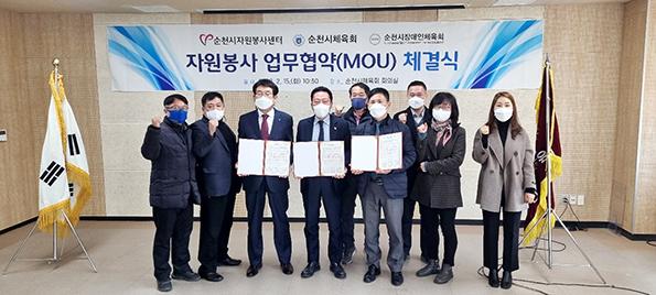 순천시체육회, 순천시장애인체육회, 순천시자원봉사센터는 오는 4월과 5월 순천에서 열리는 전남도체육대회 및 전남도장애인체육대회의 성공개최를 위한 업무협약을 지난 15일 체결했다.