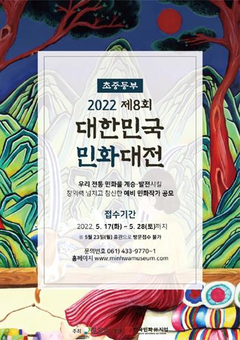 국내 최대 규모의 민화 전문 공립 박물관인 강진군 대구면 소재 한국민화뮤지엄에서 ‘제8회 대한민국민화대전’ 참가작품을 공모한다.