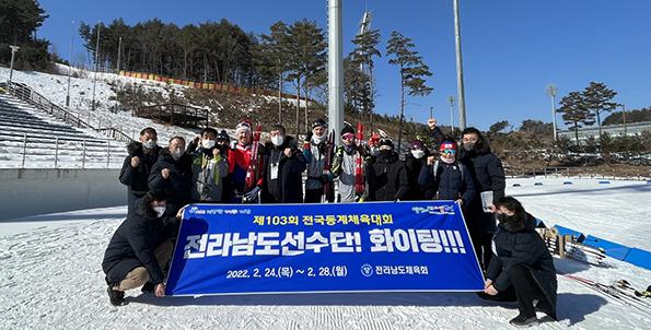 전남도체육회는 지난 25일부터 28일까지 서울, 경기, 강원, 경북에서 분산 개최된 제103회 전국동계체육대회에서 금메달 16개, 은메달 10개, 동메달 6개 등 총 32개(산악시범종목포함)의 메달을 획득하며 종합득점 314점, 종합 순위7위로 역대 최고성적으로 대회를 마무리 했다.