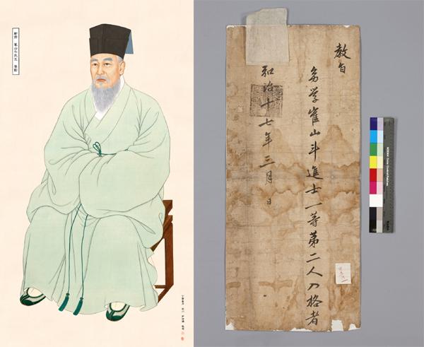 ▲광양 최산두 영정(왼쪽)·최산두 선생 백패