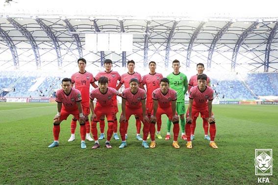 남자 축구 국가대표팀이 29일(현지시간) 아랍에미리트(UAE) 두바이 알막툼스타디움에서 열린 2022 FIFA 카타르 월드컵 아시아 최종예선 A조 10차전 경기를 앞두고 기념촬영을 하고 있다. (사진=KFA 제공) 2022.03.30.