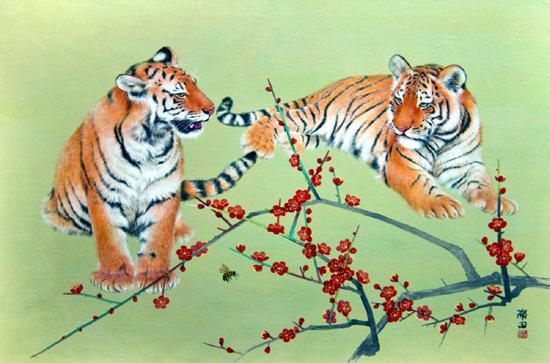 이번 전시는 전통채색화 기법으로 호랑이의 사실적인 묘사한 그림 21점과 다른 동물 그림 9점 등 30여점이 선보인다. 또 전시는 호랑이의 골격과 근육의 움직임, 독특한 습성, 털색의 변화까지 묘사됐으며 재치와 해학이 더해져 호랑이의 기운을 느낄 수 있도록 구성됐다. /권형안 기자