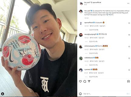 해트트릭 기념구 든 손흥민. (캡처=손흥민 인스타그램)