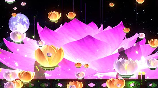 작품은 네 면의 음향반사판이 거대 스크린으로 변해 60인조 국악관현악 연주와 어우러져 시각·청각을 자극한다.