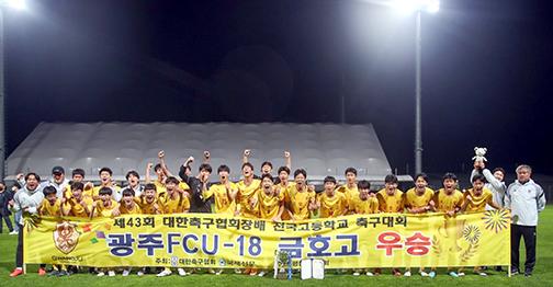 광주시체육회는 금호고가 강원도 평창에서 열린 제43회 대한축구협회장배 전국고등학교 축구대회에서 전북현대 U-18 전주영생고를 2대 1로 누르고 우승했다고 15일 밝혔다.