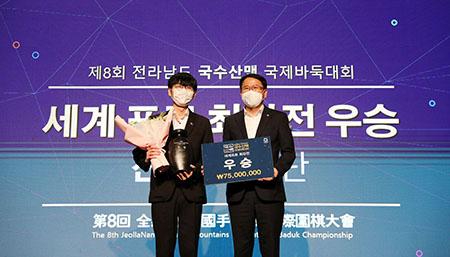 한편 이날 오전 신안 국민체육관에서 펼쳐진 국내 토너먼트에서는 이원영 9단이 홍성지 9단에게 273수만에 흑 7집반승을 거두며 우승컵을 차지했다.