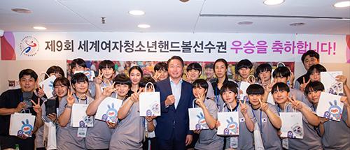 대한핸드볼협회는 17일 최태원 회장이 직접 참석한 가운데 제9회 세계여자청소년핸드볼선수권대회에서 우승한 여자 청소년 대표팀 선수단 격려 행사를 가졌다.