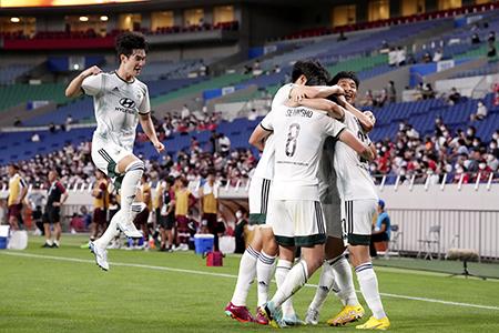 전북 현대 선수들이 지난 21일(한국시간) 일본 사이타마 스타디움 2002에서 열린 비셀 고베와 2022 AFC 챔피언스리그 8강 경기에서 연장 전반 14분 구스타보의 결승골이 나온 뒤 함께 모여 기쁨을 나누고 있다. 2022.08.23.