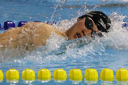 황선우(강원도청)가 9일 오후 울산 남구 문수실내수영장에서 열린 103회 전국체육대회 수영 남자일반부 계영800m 경기에서 역영하고 있다. 2022.10.09.