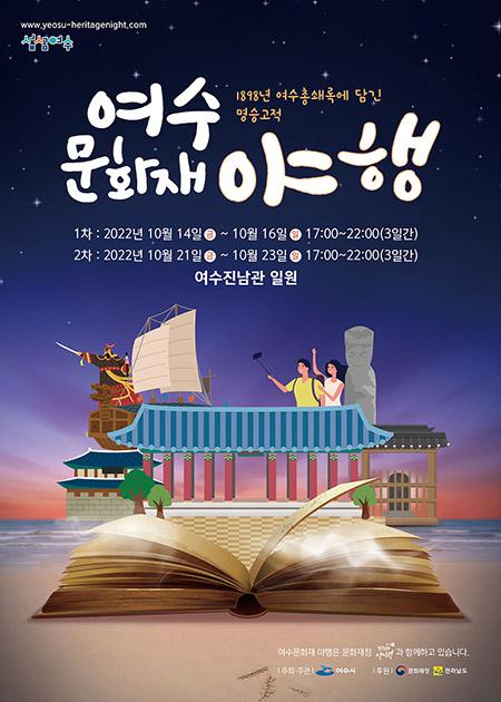 ‘2022 여수 문화재 야행’이 14~16일, 오는 21~23일 두 차례에 걸쳐 여수 진남관 전라좌수영 일원에서 총 6일간 진행된다.