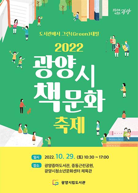 광양시가 오는 29일 ‘도서관에서 그린(Green) 내일’이라는 주제로 중마도서관과 청소년문화센터 일원에서 ‘2022 광양시 책 문화 축제’를 개최한다.