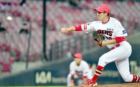 22일 오후 광주 북구 광주-기아챔피언스필드에서 열린 KIA 타이거즈 대 키움 히어로즈의 경기, 7회초 무사에서 등판한 KIA 바뀐투수 박진태가 역투하고 있다. 2021.08.22.