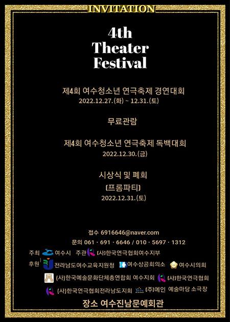 여수시가 다음달 27일 오후 2시 여수진남문예회관에서 ‘제4회 여수청소년 연극제’의 화려한 막을 올린다.