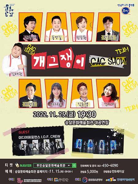 무안군이 오는 25일 금요일 저녁 7시 30분 승달문화예술회관 대공연장에서 개그쇼 개그쟁이를 개최한다.
