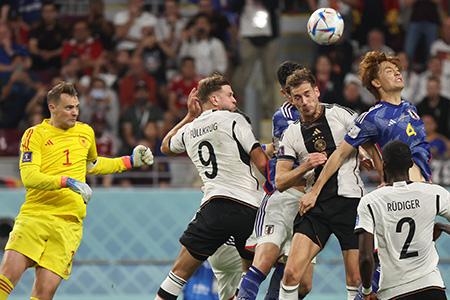 독일은 23일(한국시간) 카타르 알라이얀 칼리파 국제 경기장에서 열린 일본과 2022 국제축구연맹(FIFA) 카타르 월드컵 E조 첫 경기에서 일카이 귄도안의 페널티킥으로 선제골을 뽑았지만 내리 2실점하며 1-2로 역전패했다.