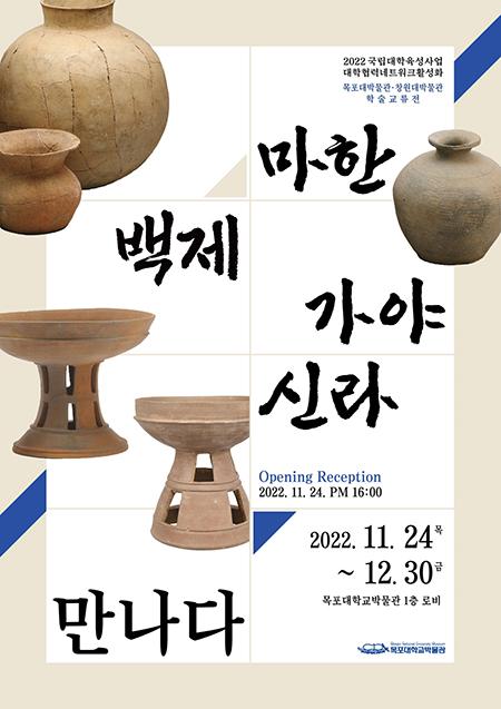 이번 전시는 2022 국립대학육성사업의 지원으로 ‘마한, 백제, 가야, 신라 만나다’란 주제로 기획됐으며, 두 대학에서 조사한 대표유적과 유물들을 통해 영.호남지역 고대인들의 삶과 문화를 조명한다.