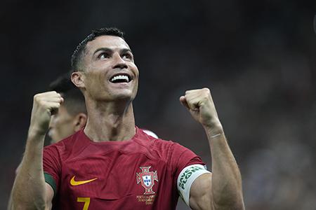 크리스티안 호날두가 29일 우루과이와의 조별리그 2차전에서 환호하고 있다. 2022.11.29