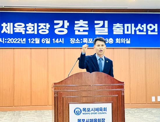 목포시체육회장 선거에 강춘길 전 목포시축구협회장이 출사표를 던졌다.