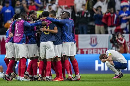 프랑스가11일(한국시간) 카타르 도하의 알코르의 알바이트 스타디움에서 열린 잉글랜드와의 2022 FIFA 카타르 월드컵 8강전에서 승리한 후 기뻐하고 있다. 2022.12.11.
