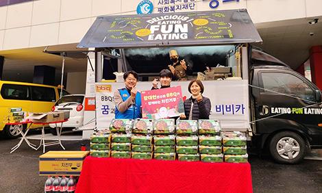 황대헌과 BBQ는 20일과 21일 안양의 집과 평화의 집을 방문해 시설 소속 아이들에게 치킨 100인분과 사이드 메뉴를 기부했다.