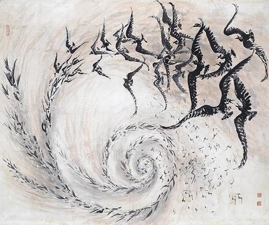 ▲김정현 ‘까마귀때’, 종이에 수묵담채 136.0×164.0cm, 유족 소장