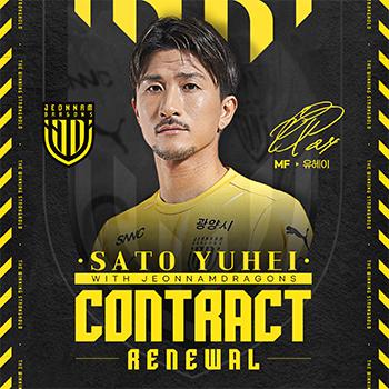 전남드래곤즈가 K리그에 완벽 적응한 미드필더 사토 유헤이와 재계약을 체결했다.