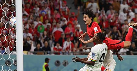 28일(현지시간) 카타르 알라이얀 에듀케이션 시티 스타디움에서 열린 2022 카타르 월드컵 H조 2차전 대한민국과 가나의 경기, 조규성이 추격골을 넣고 있다. 2022.11.28.