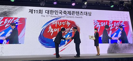 ‘대한민국축제콘텐츠대상’은 ㈔한국축제콘텐츠협회가 주최하고 서울특별시와 한국관광공사가 후원하는 상으로, 지역축제콘텐츠 산업에 크게 이바지한 지방자치단체와 지역 축제 관계자들을 선정해 시상한다.