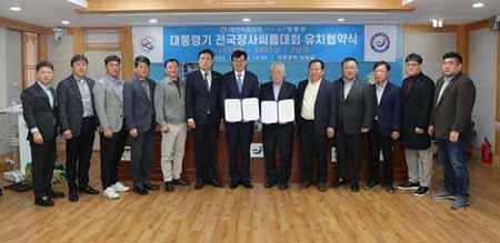 장흥군과 대한씨름협회는 2023년부터 2025년까지 대통령기 전국장사씨름대회를 장흥서 개최하기로 했다.