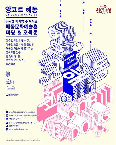 2023년 앙코르 해동의 상반기 프로그램은 대중음악과 탱고, 연극, 창극 등 지역의 특색을 접목한 다양한 장르의 공연을 무료입장으로 진행할 예정이다.