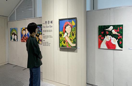 이번 전시회에서는‘일상은 선물이다’를 주제로 활짝 웃는 얼굴과 함께 꽃과 가족, 나무, 새 등이 어우러진 밝은 분위기의 힐링과 치유의 작품들을 선보이고 있다.
