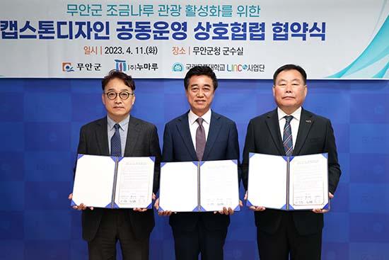 무안군은 11일 무안군청에서 무안군수, 목포대학교 LINC 3.0 이상찬 사업단장, ㈜누마루 김기원 대표가 참석한 가운데 무안군 조금나루 관광 활성화를 위한 창의적 종합 설계(캡스톤 디자인) 공동 운영 협약을 체결했다.