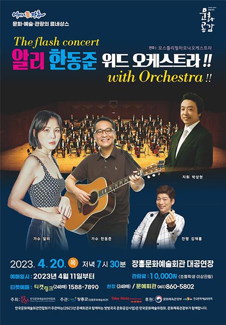 장흥군은 오는 20일 저녁 7시 30분 장흥문화예술회관에서 플래시 콘서트 ‘알리, 한동준 with 오케스트라’ 공연을 개최한다고 밝혔다.