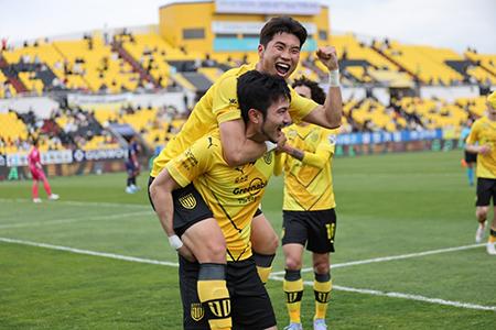 전남드래곤즈가 지난 15일 오후 1시30분 광양축구전용구장에서 열린 \'하나원큐 K리그2 2023\' 7라운드 홈경기에서 충북청주FC를 3대 0으로 제압하고 홈 첫 승을 기록했다.