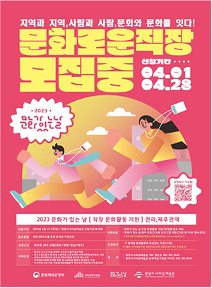 광양시 사라실예술촌은 오는 28일까지 2023년 문화가 있는 날 「직장 문화 활동 지원사업」에 참여할 전라-제주권 참여 직장을 모집한다고 20일 밝혔다.