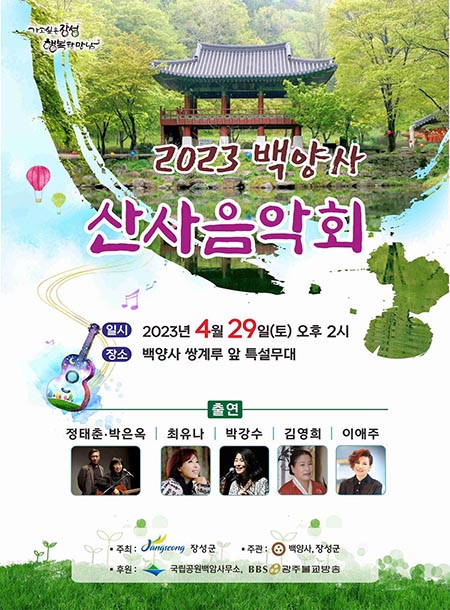 4월의 마지막 주말인 오는 29일 전남 장성 백양사에서 싱그러운 봄을 만끽할 수 있는 음악회가 열린다.