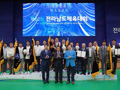 \'청정바다 완도에서 화합하는 전남체전\'이라는 대회 구호 아래 12일부터 15일까지 완도군에서 개최된 제62회 전라남도체육대회는 15일 완도 청해진스포츠센터에서 열린 폐회식을 끝으로 사흘간의 대장정을 마무리했다.