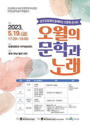 조선대학교 재난인문학연구사업단은 19일 오후 5시20분 남동성당에서 \'오월의 문학과 노래\'를 주제로 인문학콘서트가 열린다고 17일 밝혔다.