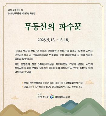 광주 동구(청장 임택)는 지산동에 개관한 시인 문병란의 집에서 제43주년 5·18광주민주화운동을 기념한 특별 전시 ‘무등산의 파수꾼’을 6월 18일까지 한 달간 개최한다고 밝혔다.