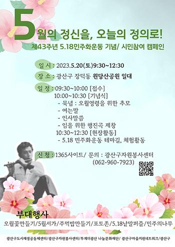 광주 광산구가 5·18민주화운동 43주년을 맞아 오월정신을 기억·계승하기 위한 다양한 시민 참여의 장을 마련한다.