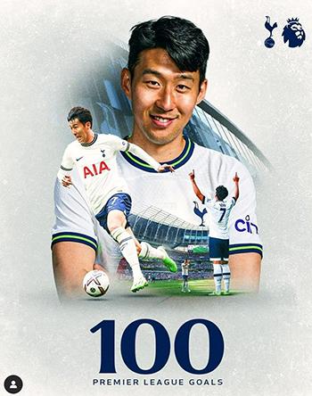 손흥민 EPL 통산 100호골 달성.(사진=토트넘 구단 SNS 캡처) 2023.04.09.