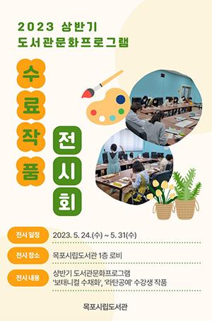 목포시립도서관이 2023년 상반기 도서관문화프로그램 운영(3.21.~5.23.)을 마치고 오는 31일까지 도서관 1층 로비에서 수강생 수료 작품전시회를 개최한다.