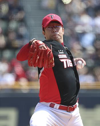 14일 서울 송파구 잠실야구장에서 열린 2023 KBO리그 두산 베어스와 KIA 타이거즈의 경기, 1회 말 두산 베어스 공격, 기아 타이거즈 선발 투수 양현종이 역투하고 있다. 2023.05.14.